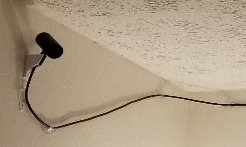 Anyway, it took a while, but it’s (mostly) done. There is a stretch of wire that sags a bit because you are supposed to put a hook every 2 feet, but that section of wall is completely taken up by a window, and the frame is not a flat surface (the hooks need a flat surface to adhere to). I’m debating adding some additional hooks at an angle on the opposite side to kinda provide some friction to hold the wire up a little better.