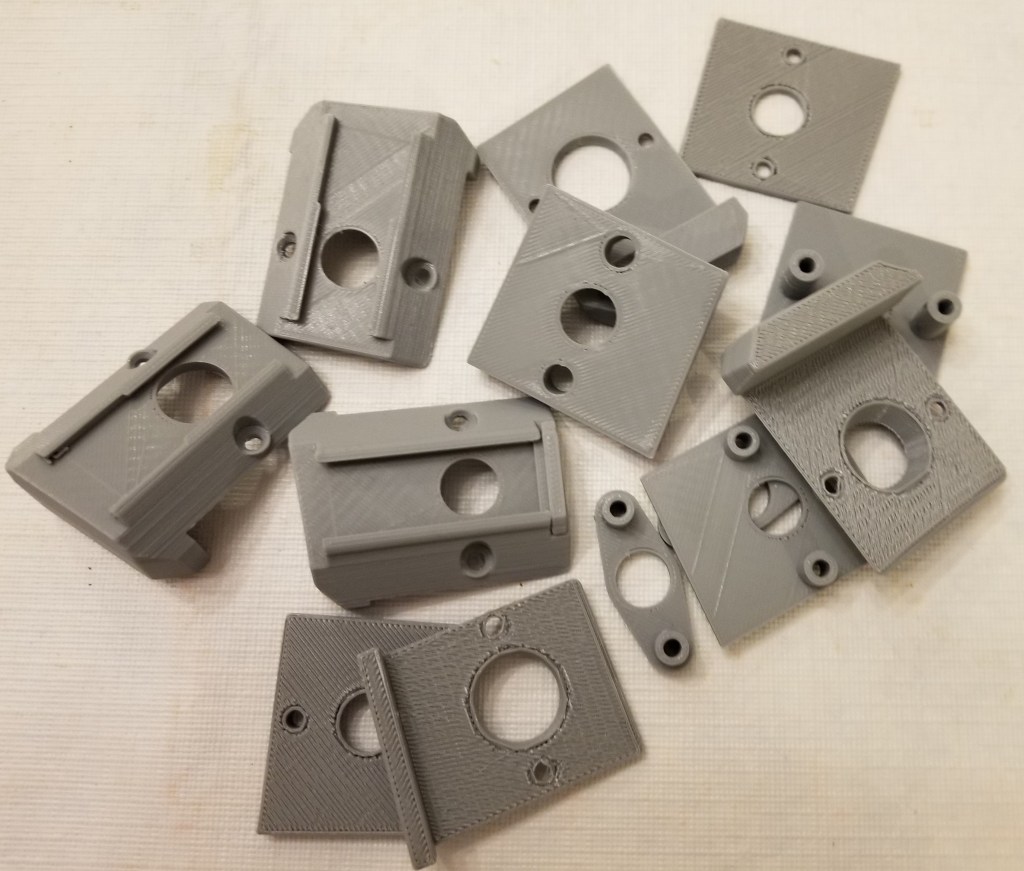 I knew I liked the idea of a red safety cover for the switch, but those are designed to turn a regular flip switch off when they closed. I needed a way to have a cover a switch while the thing was still powered on. I found the switch that would fit through the hole of the safety cover (after a little… modification with the deburring tool), and figured out how to design the little bugger to hole the actual switch, the switch cover, allow for proper free movement of the switch to function, and attach the switch neatly and securely to the case. I’ll spare you the iterations, but it took a while, and I think I got it to look pretty good and hold well. I like that I have a red power button under a red safety cover now. It just feels… right.