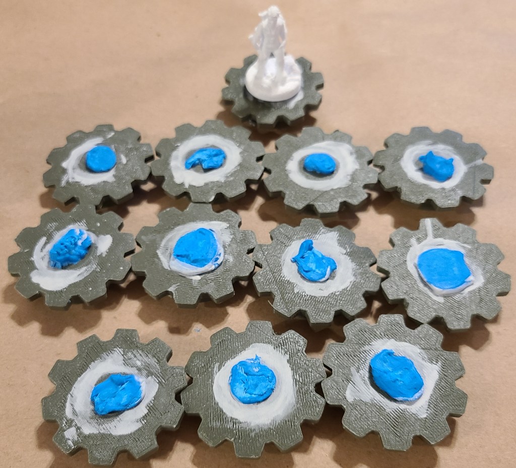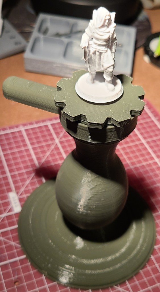 I had seen people use painting handles before, and they appeared to help a lot, so before I started painting I 3D printed one for myself, along with a lot of “pucks” to attach miniatures to in order to paint.