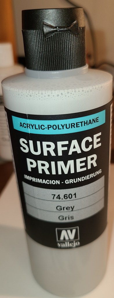 For the 3D printed ones I’ve been priming them, and I’ve got primers in two different colors. The white was for one thing that I still wanted to be white when I was done. I was hoping the gray would be darker so it’d be easier to distinguish from the white while I’m hand-priming (I’m kinda sick of spraying paints from my time with previous projects), but it’s still not that far off from white.