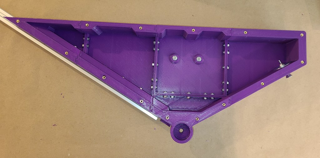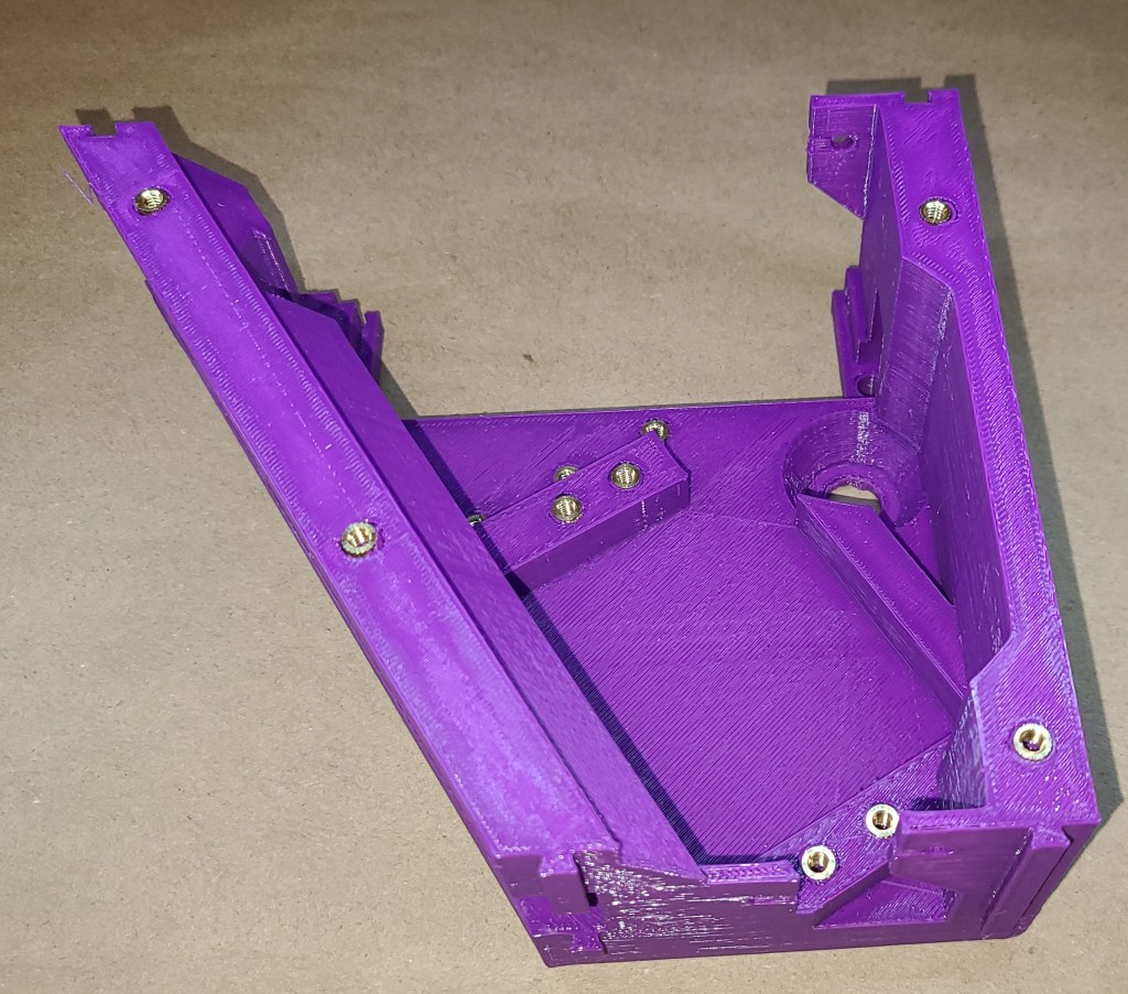 This is the mechanical 3D printed assembly that I designed LAST, due to complexity. For one thing, I ended up having to get a new tool to figure out what the heck the threads were on the bolts on this thing.