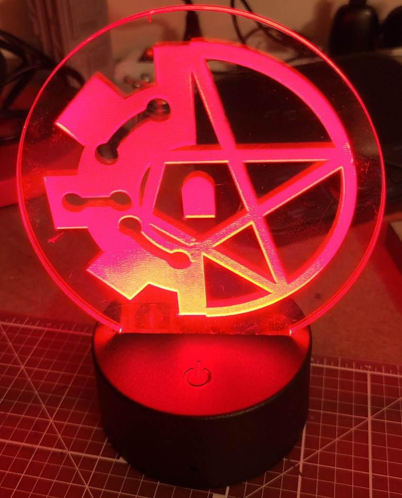 Pretty straightforward, gives me some themed lighting, and was good for getting a bit more familiar with some of the process of creating my own engraving.