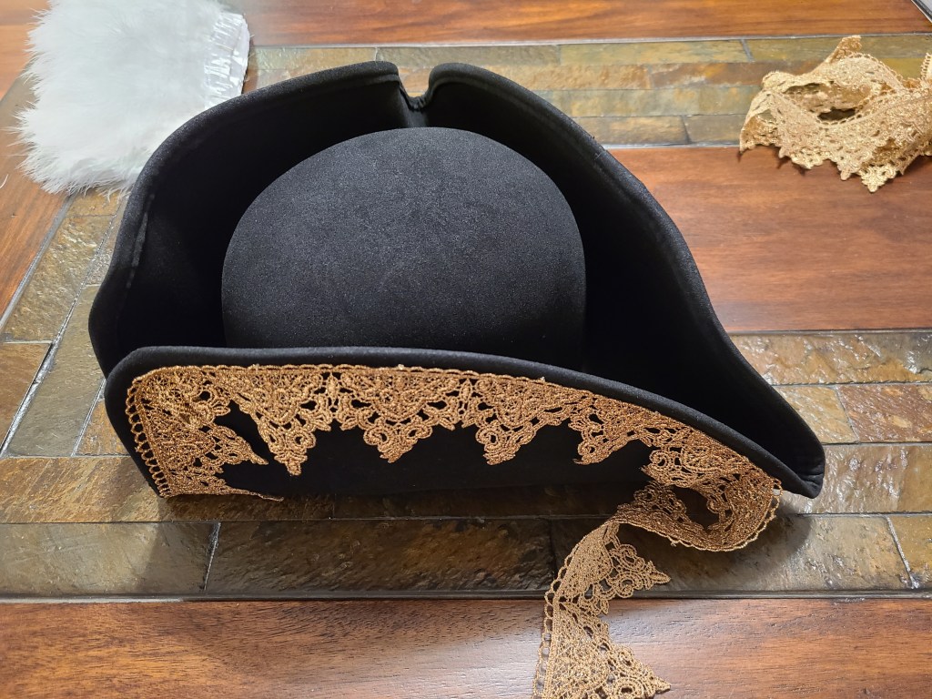 I keep a wall of hats above my shelves of board games, as kind of a thematic backdrop, especially with the RPGs. One that needed to go on the wall is a pirate hat. However, most of the pirate hats I saw were disappointing to me. For one thing, ever since my childhood, this has been my idea of THE pirate hat: