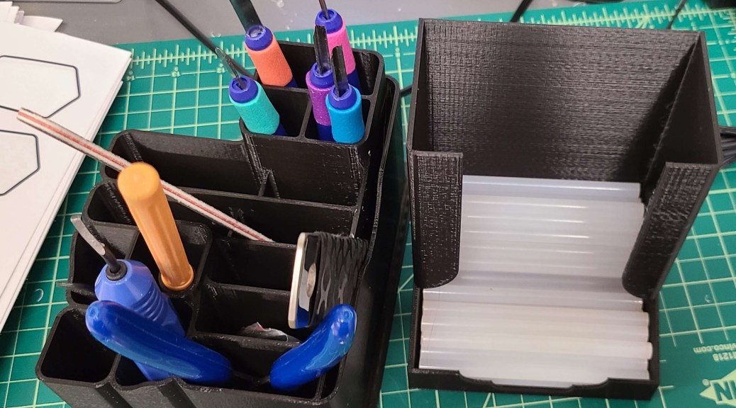 When you spend 10 minutes looking for something and it turns out it was EXACTLY where it was supposed to be… just at a weird angle with a little stuff on it obscuring it… you get frustrated and finally make an organizer for it. Now I can find my 3D printing spatula every time. And the related tools.