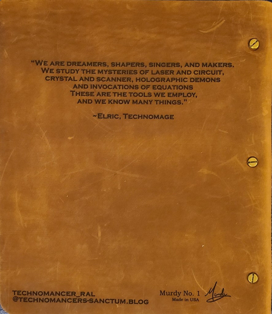 There are oftentimes bits of information that I frequently need to look up. Originally some of the stuff was on bits of paper, or I would have to repeatedly look up documents online. I got annoyed with trying to keep track of it across multiple locations, so I decided to get a binder or something. Then I decided to lean fully into the wizard/technomancer theme, compiling my everyday references for my technological hobbies as a “spellbook.”