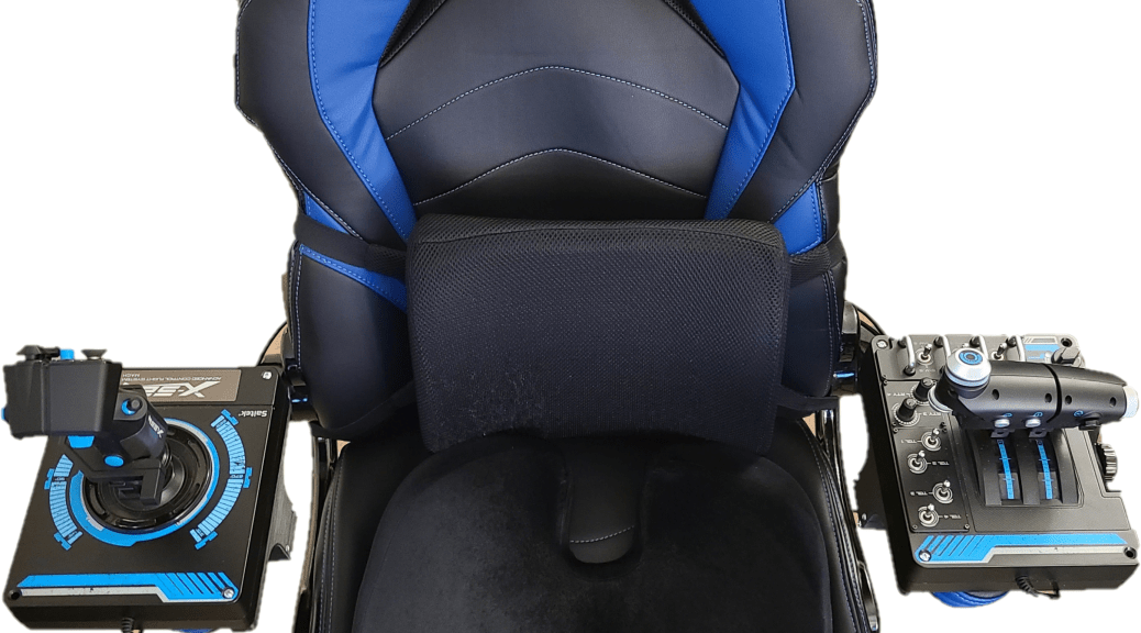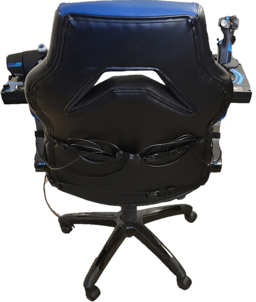 I got tired of having to find spaces for my HOTAS controls on my desk, and having them competing for space with my keyboard and mouse. I had time and parts on my hands, so I decided to revisit clamping the HOTAS controls to my gaming chair.