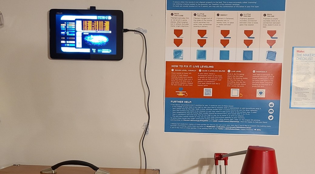 I now have access to controlling the software for my 3D printers set up to be in the same room as the printers themselves. It makes it easier if I need to access the controls for calibrations and such, without the need to bring them up. It’s still not as quickly accessible as I’d like (it still requires waking it up and punching in a pin) but it’s still more convenient than bringing up the controls on my phone or running to the other room to my shortcuts on the computer.