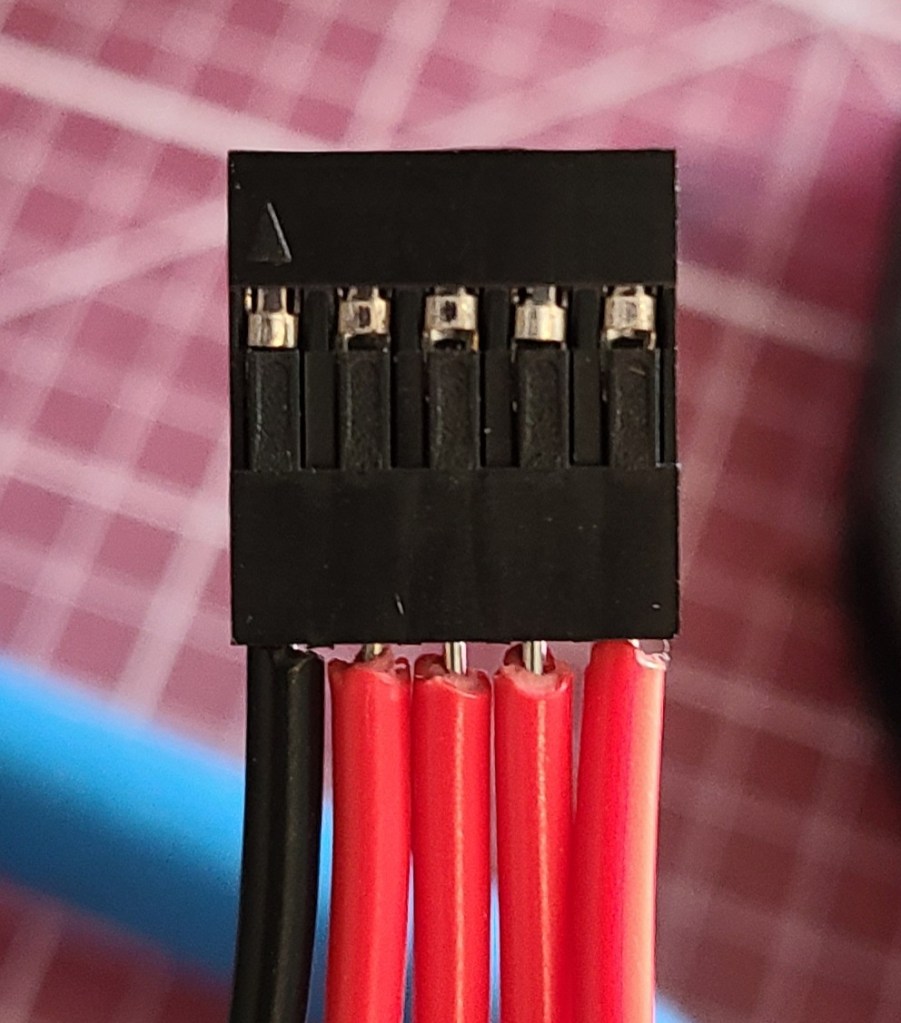 6. For connecting to the joystick, I used solderless connections to save my sanity, since it came with connector pins on the stick already.