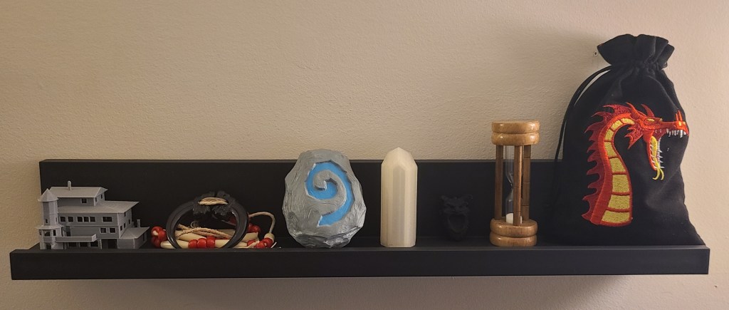 Sanctuary upgrade: Small shelves. I got tired of knickknacks in my way on my regular shelves, so I’ve started putting up some command strip shelves just for them.