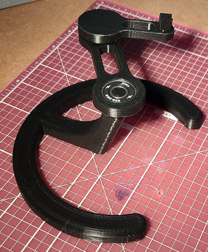 I had the printer time available and a couple of skateboard bearings already on hand. I decided to go with black filament to keep the aesthetic matching with other hardware around my computer and let it blend into the background a bit.