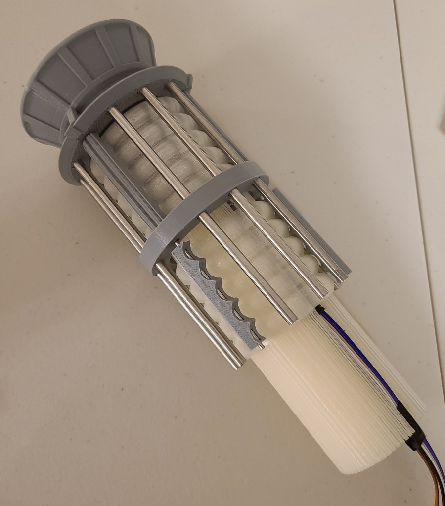 This led to a bit of experimentation with modifying the 3D models and reprinting the “tension members” to “cheat” them to a length that would work with the steel rods. That took a bit longer than it should have due to unexpected 3D printer problems.