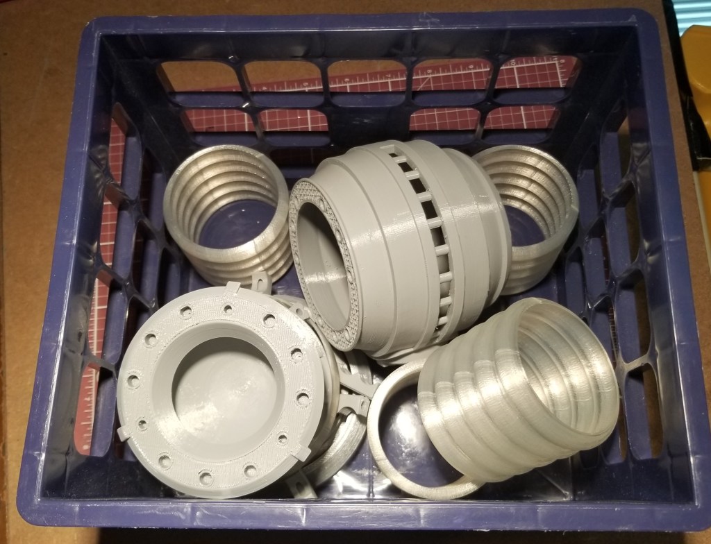For another, I’ve been fixing my 3D printers, and have had all this monitored print time available recently, so I’ve had no excuse NOT to make it anymore. So, I’ve been spitting out the parts for this thing lately.