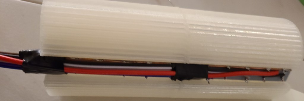 As mentioned in the note above, I forgot to wire the ground wire first on the top section, meaning I had to add it in last, connecting it at the far end rather than the close end. In the bottom section I did it first, because I really needed room for the power/programming USB cable to fit in.