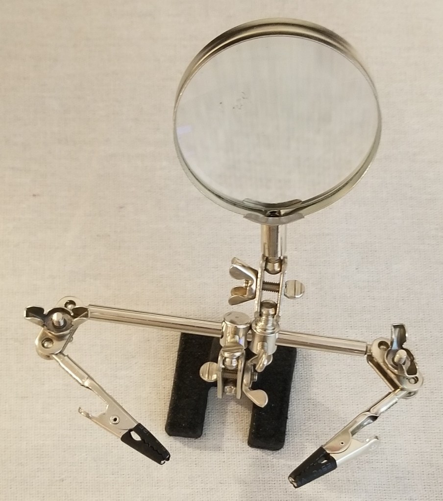 Used to hold items that you are soldering, so that you don’t have to hold the item and solder at the same time. This one has a magnifying glass, but I don’t find it too helpful. I may have to get a magnifier lamp or jeweler’s magnifiers in the future.