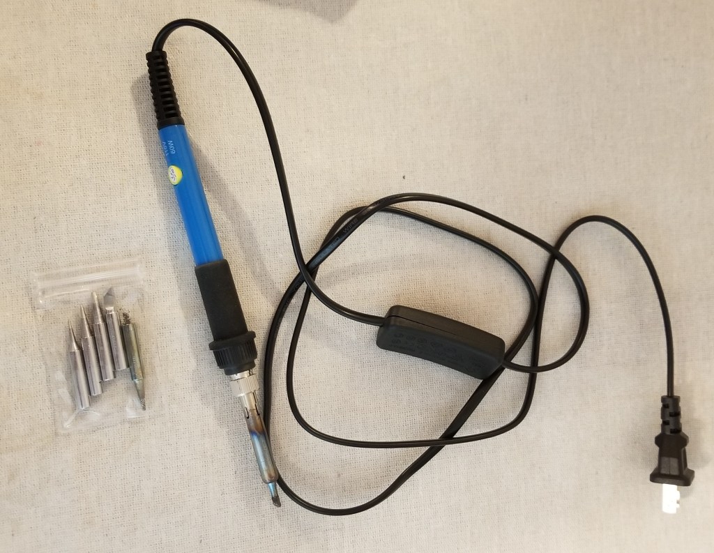 A standard electronics tool used to heat solder. There are also different soldering iron tips to swap out.