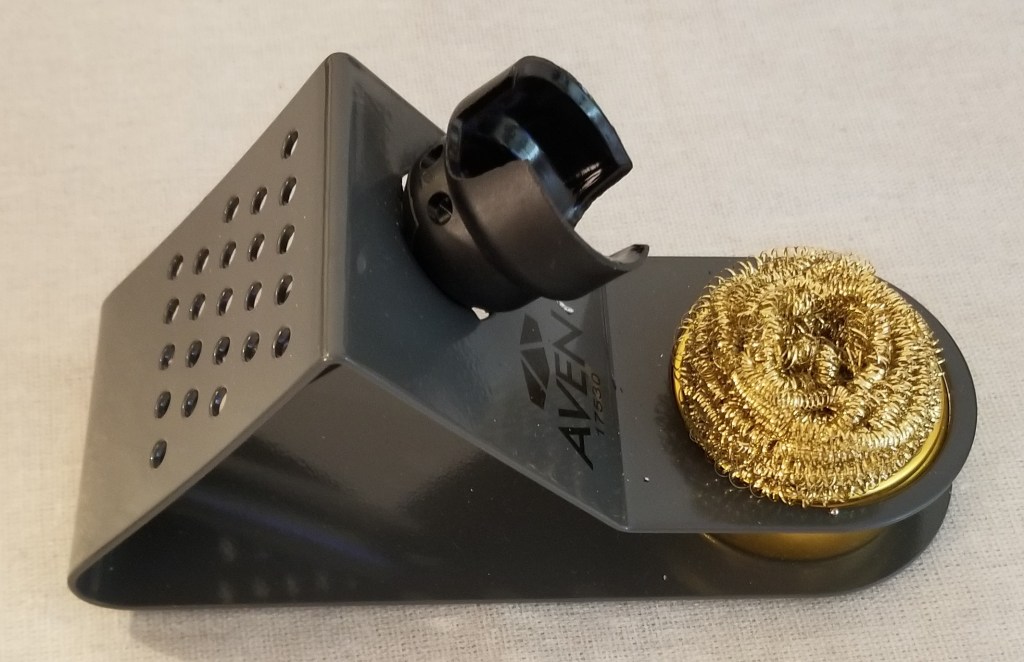 A safe spot to put the soldering iron down without damaging things. It also has a built in pad for cleaning the tip.